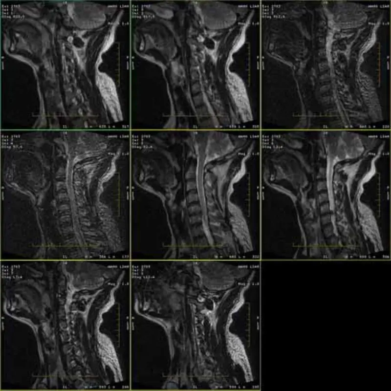Obrázky protokolů FRFSE a GRE mají duchy a někdy se v jedné sérii objevují obrázky s nízkým SNR. Ale snímky protokolu SE jsou normální.